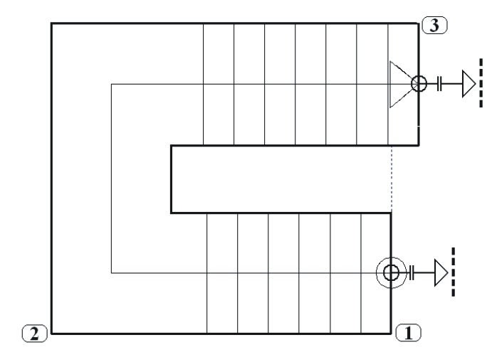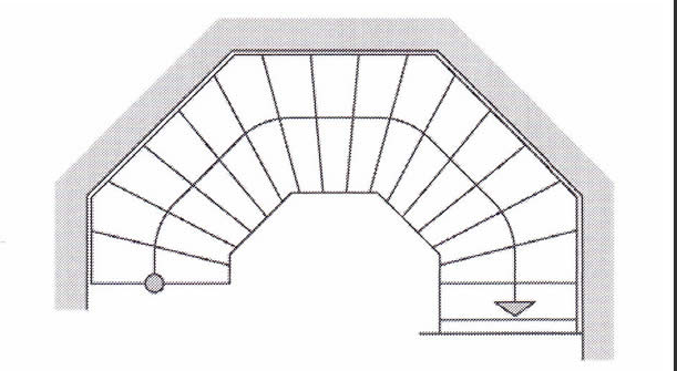 Bei 1/2 gewendelten Treppen findet die spiralförmige Drehung in der Mitte statt. |